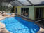 Der 9.5 x 4.5 m große Freiform-Pool mit einer Tiefe von 90 bis 170 cm ist elektrisch beheizbar, sodass Sie ganzjährig die von Ihnen gewünschte Wassertemperatur einstellen können. Der angrenzende übergroße Spa mit Luft- und Massagedüsen sowie Hot-Tub Funktion lässt echtes Wellness-Feeling aufkommen. Der Einstieg in Pool und Spa erfolgt bequem über Treppen. Dank der beiden Unterwasser-Sitzbänke im Pool können Sie auch dort Ihren Cocktail genießen und dabei die vorbeifahrenden Boote oder den Sonnenuntergang bestaunen. Pool und Spa verfügen beide über LED-Farbwechsel-Unterwasserscheinwerfer, die im Dunkeln ein stimmungsvolles Szenario erzeugen. Der 3-Brenner Weber Gasgrill ermöglicht Ihnen die Zubereitung eines schmackhaften Barbecues. Das direkt von der Terrasse aus zugängliche zweite Bad mit Toilette, Dusche sowie Waschbecken rundet den Komfort ab.