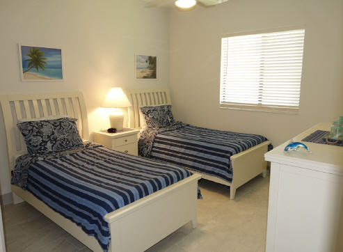 Das gemütliche Gästezimmer hat zwei Einzelbetten, einen großen Wandschrank sowie eine Spiegelkommode. Das dazugehörige Badezimmer teilen Sie sich mit der Juniorsuite 2. Sie erreichen es mit zwei Schritten über den Flur. Es verfügt über eine große Dusche, Doppelwaschtisch sowie Toilette.