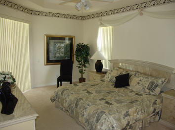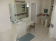 The spacious master bedroom comes with a king size bed as well as with its own TV-set with VCR. The room has a direct access to patio and pool. You stow your clothing in the walk-in closet. The belonging bountiful master bathroom offers a walk-in shower, bath-tub, two single vanities, make-up table as well as a water-closet. The cozy lounge in the bay invites you to relax after have taken a bath. It goes without saying that in all bathrooms of our house ample hand- and bath towels as well as hairdryers are available.