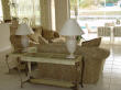 This extra high room with its friendly and bright atmosphere imparts bountiful plainness and offers ample and comfortable space for 6 to 8 persons in the central area. Nevertheless, due to the direct connection to the kitchen and the breakfast corner the distances are short. From the suite you enjoy the view to pool, palm tree-garden and canal. The entertainment center with TV, DVD-player, CD-player and cassette-player provides good entertainment to the inside and - if wanted - also to the patio area. A selection of CDs of the various genres is available to you.